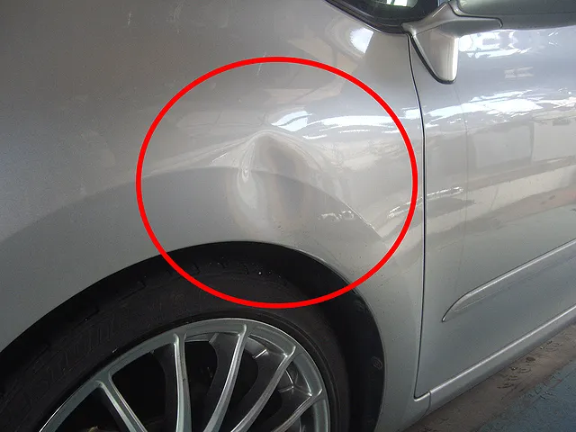 フェンダーのキズ、ヘコミ修理も綺麗にお直しさせていただきます。熟練の職人が作業を行うので、安心してお車を預けていただけます。